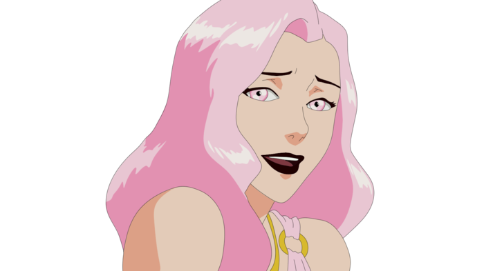The shroud starts to manifest when she is revealing her Reiatsu's full extent. A long slender dragon with a lion's face, that even with no present wind, looks as if it is floating in the wind like a kite. billowing around her in bright purple and pink hues as if a tornado was forming around her.