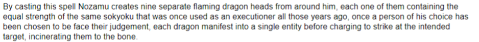 •Oni Dekopin (鬼デコピン, Oni Headpoke): Pulling a finger back against their thumb, the practitioner flicks it at an opponent. The blow carries enough physical force to send the opponent flying a considerable distance away and crashing through multiple physical constructs.