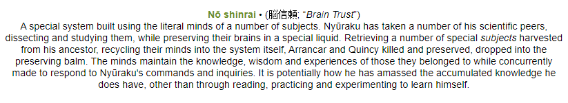 Deductive Reasoning: Not an easy skill to come by for most, requiring the skill and talent of a true lawman and learning the various ‘tells’ of the many different kinds of people. Shusuke in his tenured time in the Sixth Division has formed a cognitive sixth sense and an impetuous eye for detail in any scenario he lands himself in. Ranging from bodily movements to inanimate objects as well as obstructed scenes and difficult puzzles, he is easily able to rationalize and reason within himself to find the correct path, and seemingly always make the right decision. Regardless of how small a clue, a clean environment, or dirty. Shusuke's level of reasoning will always fall to the correct path to take, making him the Seireitei’s best detective. He has been able to apply this to some of his fighting methods to further his understanding of souls and living persons hand to hand techniques as well as mannerisms concerning weaponry of various forms.