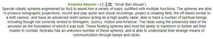 Mippei Fūdo: Literally meaning (密閉フード; Sealing Hood) A parting gift from his former R/D Division mates, Shusuke garnered a reputation of being silent when walking into the lab and then turning in work that everyone had long forgotten about. Perfecting one of his favorite personal effects, a member of the Research and Development team constructed a light-weight fabric cloak that is designed to hide Reiatsu and Reiryoku. In order for activation the hood of the cloak must be on the user at all times for their Reiryoku to be hidden away.